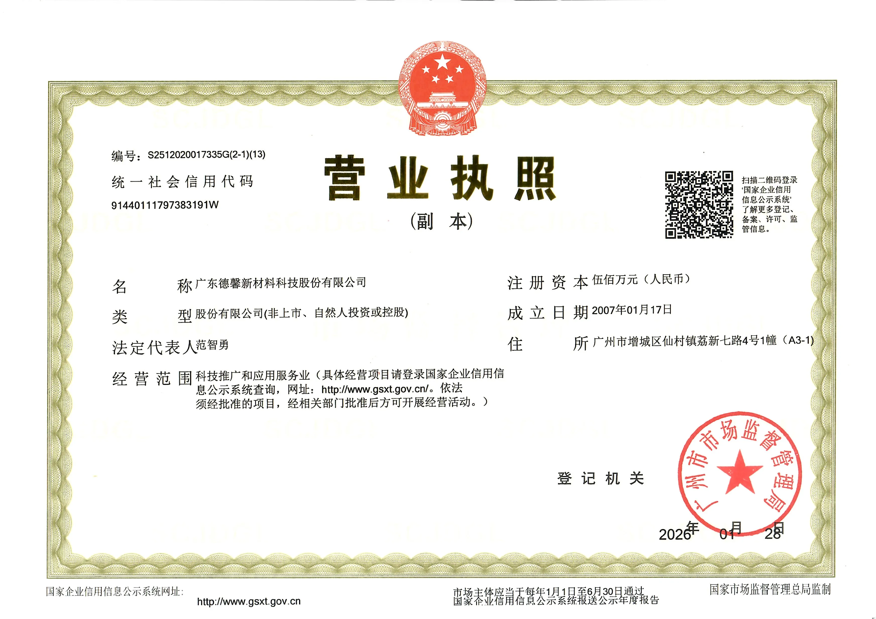 Registered address : Building 1 (A3-1), No. 4, Lixin 7th Road, Xiancun Town Guangzhou Guangdong China